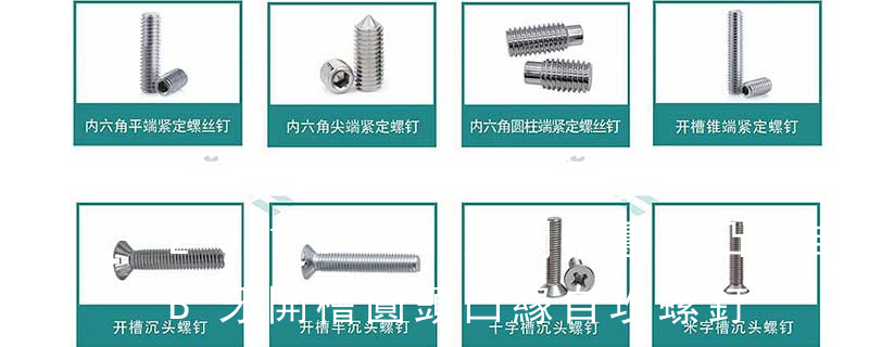 主要分類包括普通螺絲、機(jī)螺絲、自攻螺絲和膨脹螺絲三種。 有頭螺釘Cap screw 過去限于全牙的扣件。 六角頭螺釘Hex cap screw與大六角螺栓Hex bolt 顧名思義為頭部為六角型的外螺紋扣件,設(shè)計(jì)為使用扳手轉(zhuǎn)動(dòng)。依照ASME B18.2.1標(biāo)準(zhǔn),六 Ex:M3 x 6 – P P B : M3機(jī)械螺絲,6mm 長(zhǎng),十字,圓扁頭,鍍黑。Finish Code:外觀處理規(guī)格 Head Code:頭部外型。螺絲頭部外形。圓柱頭。半沉頭。沉頭。球面圓柱頭。盤頭。半圓頭。六角頭。螺絲頭部外形 Thread